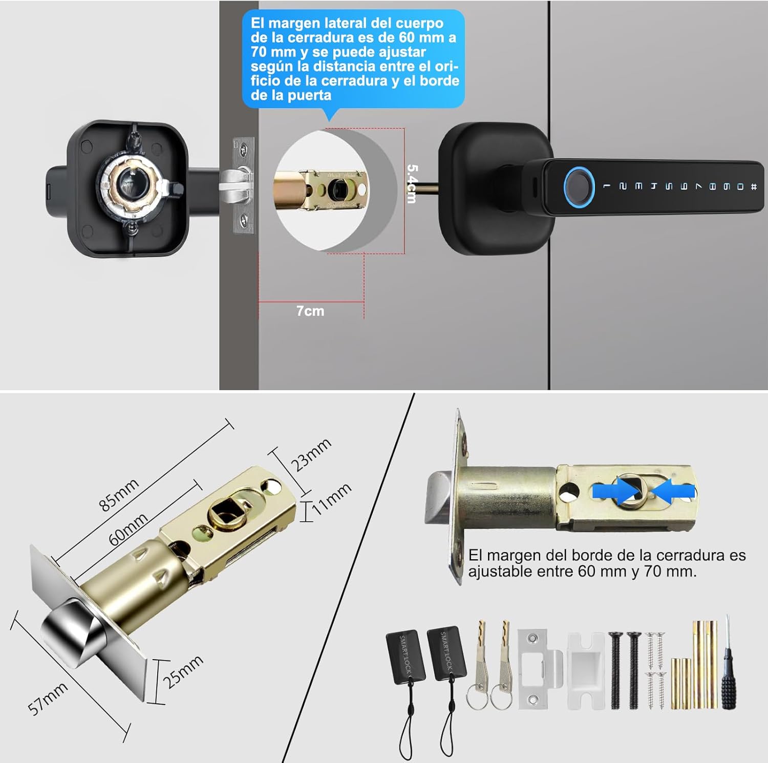 Incluye: Cerradura Inteligente LockPro® , kit de instalación , juego de tarjetas electrónicas IC , juego de llaves físicas , manual de usuario.